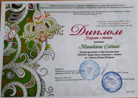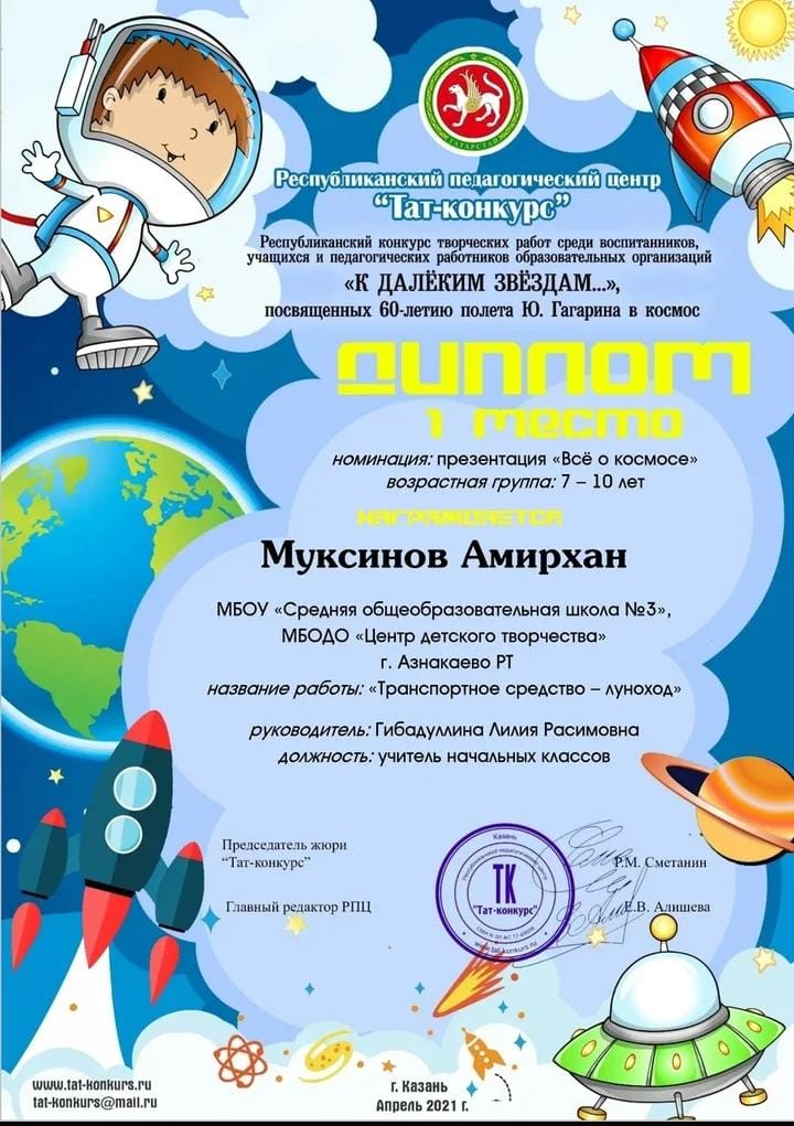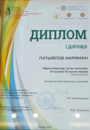 1 место в Республиканском конкурсе "Джалилевские чтения" (Латыпов Н.)