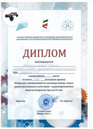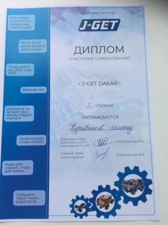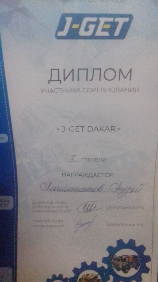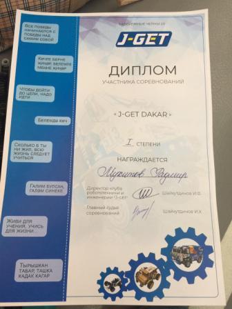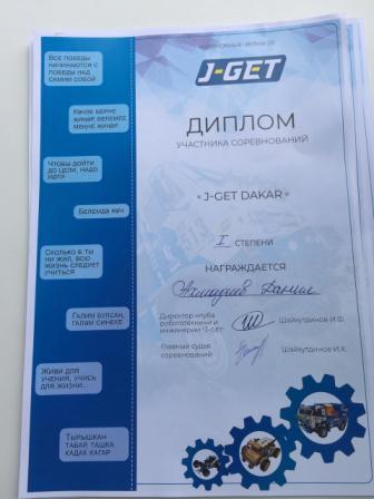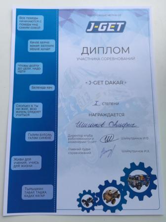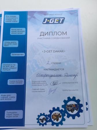 1 место на республиканских соревнованиях "J-GET DAKAR" (Шафигуллин Д.)