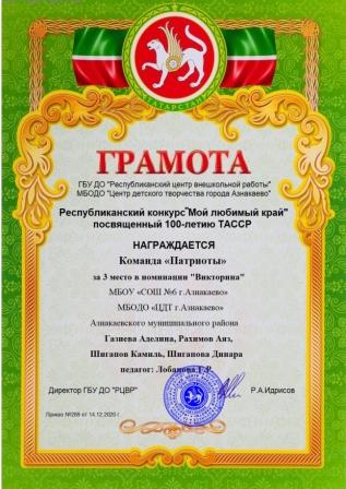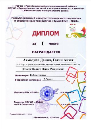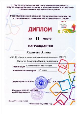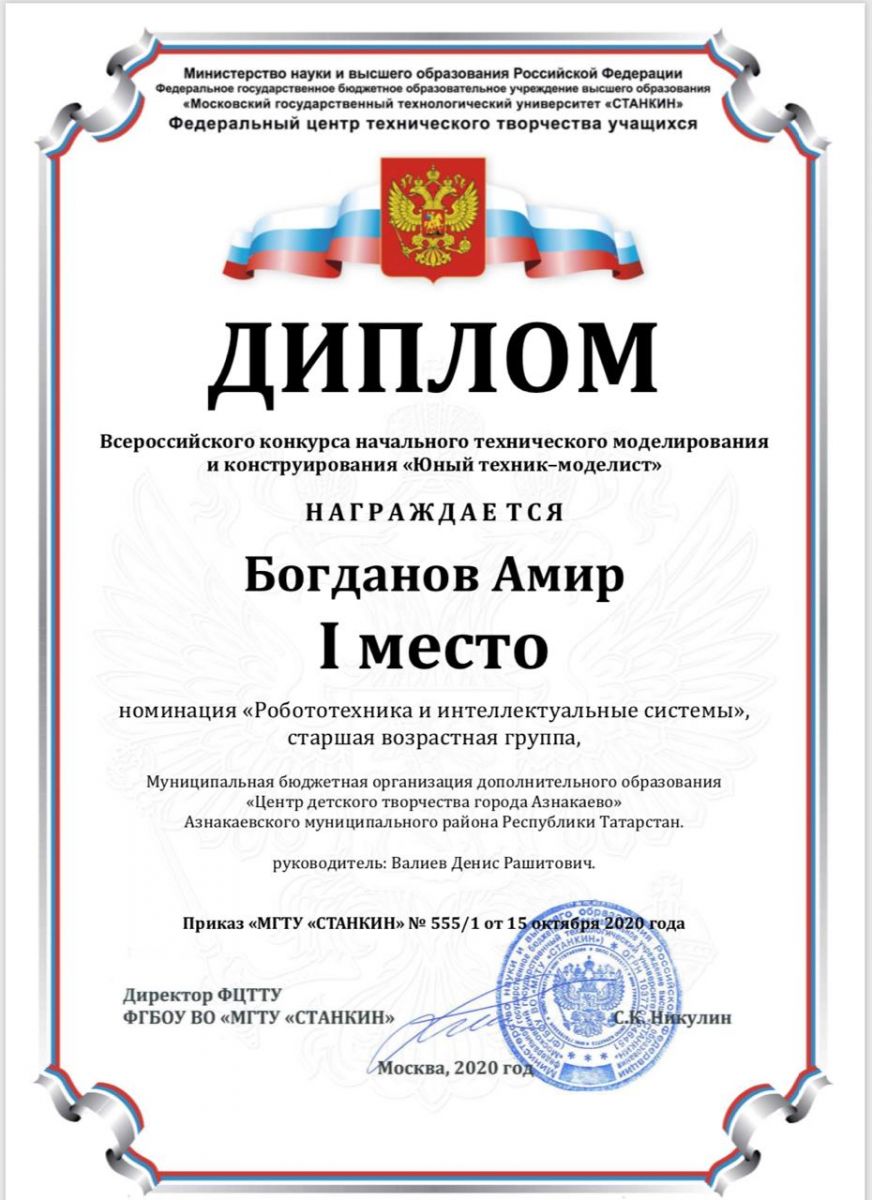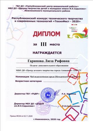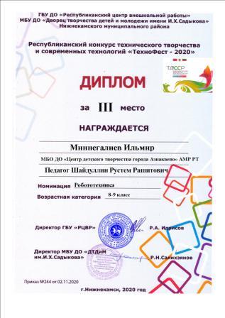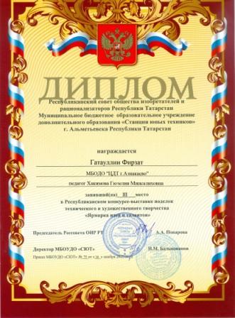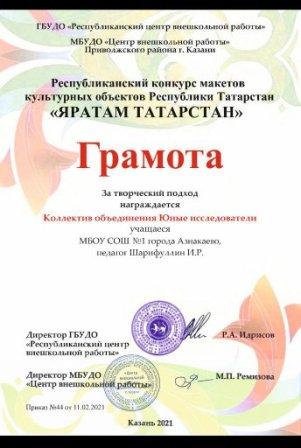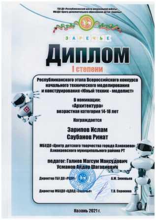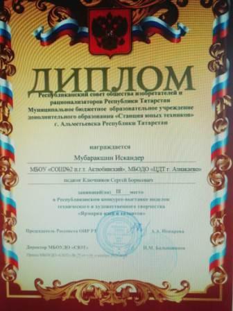 1 место в Республиканском конкурсе авторских видео мастер-классов "Педагог-мастер" (Хазеев Р.З.)