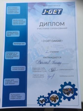 1 место в республиканских соревнованиях "J-GET" (Мухитов Р.)