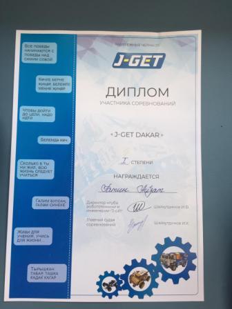 1 место в республиканских соревнованиях "J-GET" (Ахмадиев Д.)