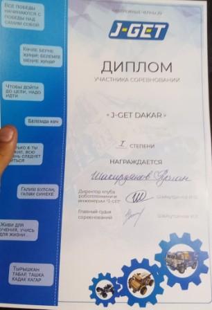 1 место на республиканских соревнованиях "J-GET DAKAR" (Ахмадиев Д.)