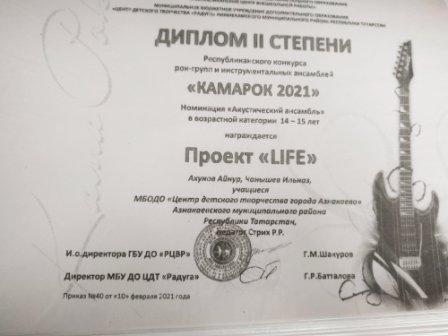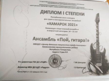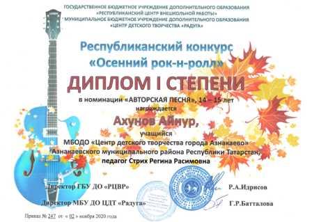 1 место в Республиканском конкурсе «Осенний рок-н-ролл» (Ахунов А., Стрих Р.Р.)