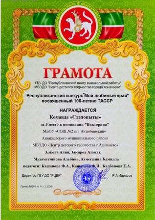2 место в Республиканском конкурсе видеороликов (Хабирова А., Хабирова Г.А.)