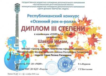3 место в Республиканском конкурсе «Осенний рок-н-ролл» (Шаехов И., Стрих Р.Р.)