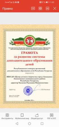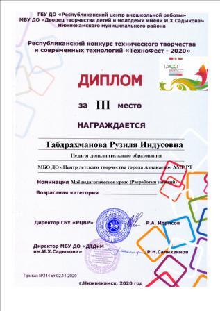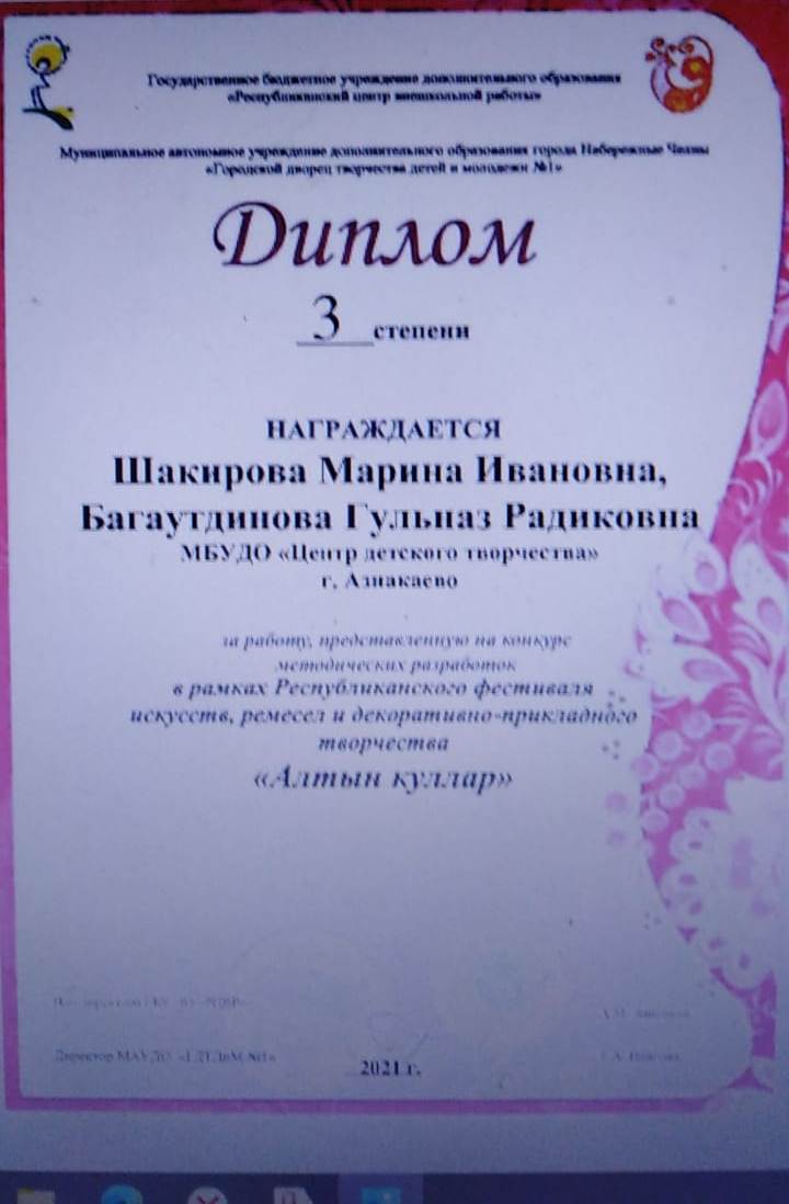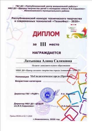 Грамота за творческий подход в Республиканском конкурсе методическх разработок (Латыпова А.С.)