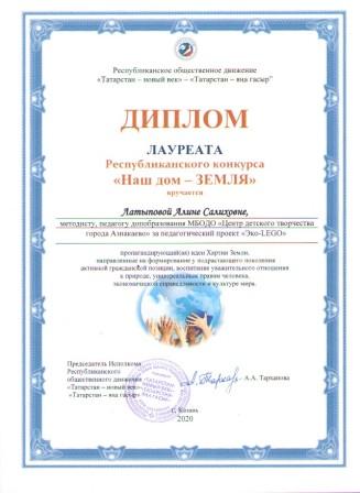 Лауреат Республиканского конкурса "Наш дом - Земля" (Латыпова А.С.)