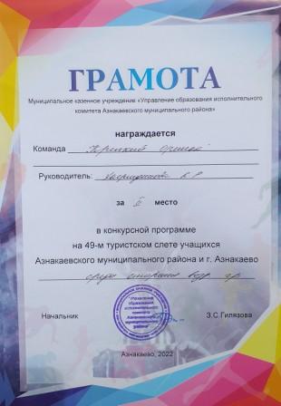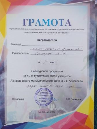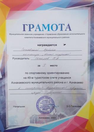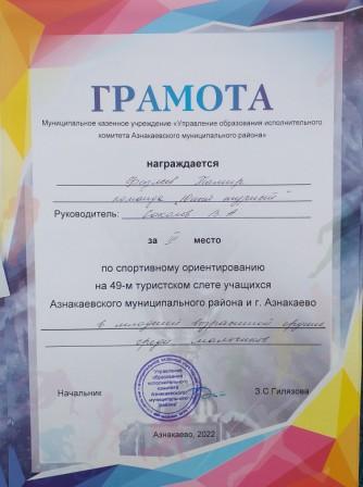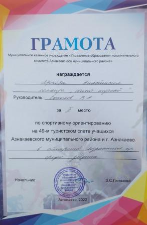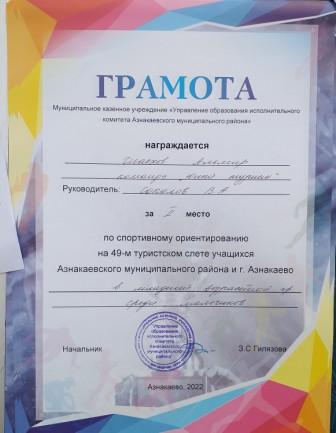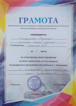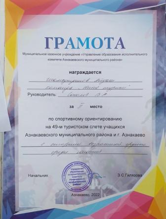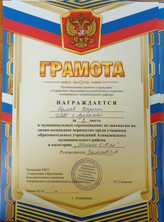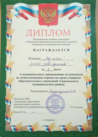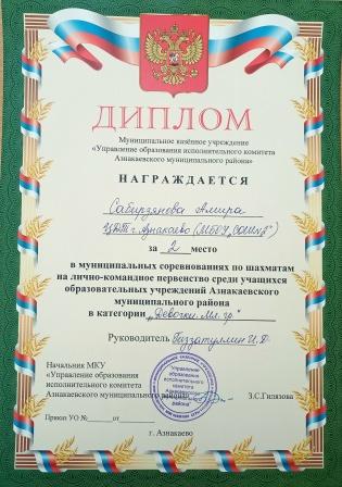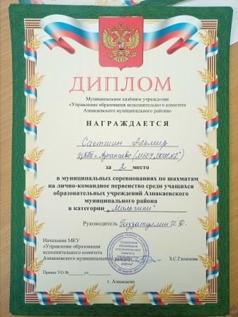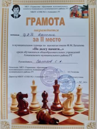 2 место в муниципальном турнире по шахматам им. Ф.М. Латыпова ("Каиссия", Салихов С.А.)