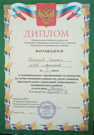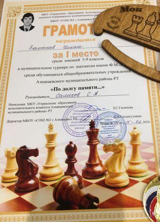 1 место в муниципальном турнире по шахматам им. Ф.М. Латыпова (Бахтиев И., Салихов С.А.)