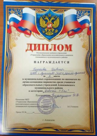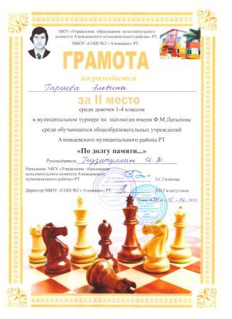 2 место в муниципальном турнире по шахматам им. Ф.М. Латыпова (Гараева Э., Гиззатуллин И.Д.)