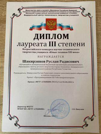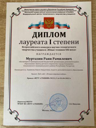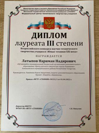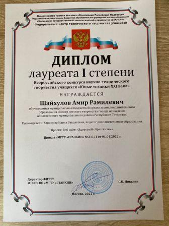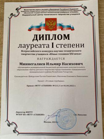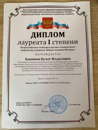 Лауреат 1 степени на Всероссийском конкурсе-фестивале искусств (коллектив "Мирас", Кадырмаева Ф.К.)