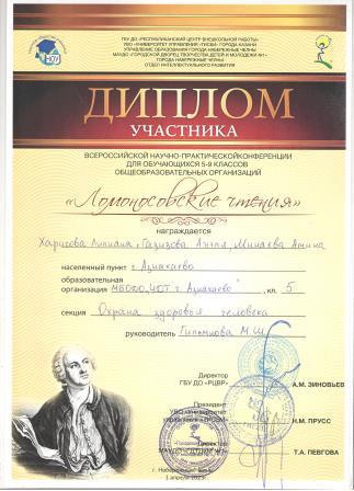 Диплом участника Всероссийской научно-практической конференции (Харисова Л., Гильманова М.Ш.)