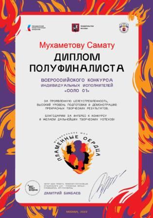 Диплом Всероссийского конкурса индивидуальных исполнтелей "Соло 01" (Мухаметов С., Стрих Р.Р.)