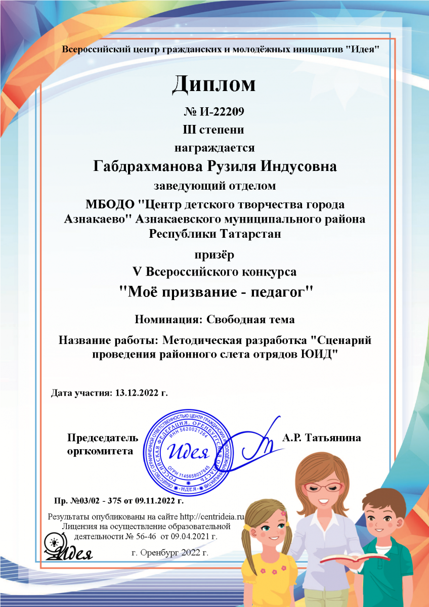 3 место во Всероссийском конкурсе "Мое призвание - педагог" (Габдрахманова Р.И.)