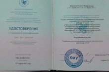 С 17 по 27 апреля наш педагог Г.Ш. Шарипова прошла курсы повышения квалификации по программе дополнительного профессионального образования в г.Бугульма. Успешно написала итоговую работу на тему: "Разработка рабочей программы дополнительного образования детей" и получила удостоверение о повышение квалификации. Поздравляем!