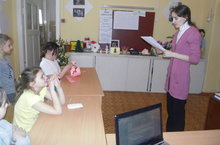 23 апреля 2015 года в объединении "Умка" прошел творческий отчет "Путешествие по сказочному лесу", целью которого являлся показ знаний, умений и навыков, приобретенных детьми объединения за второе полугодие. На мероприятии присутсвовали родители воспитанников и педагоги других объединений. Для ребят была показана сценка с участием Бабы-яги и домовенка Кузи. Ребята спели несколько песен, сделали аппликацию и подарили их мамам, побывали в стране "Грамматейка", где с удовольствием и азартом решали задачи на логическое мышление. В заключении мероприятия воспитанники объединения с удовольствием станцевали танец"Барбарики". В конце праздника дети были награждены дипломами за конкурсы рисунков, которые проводились в нашем учреждении:"Дети за мир без войны" и "Все начинается с мамы".