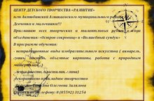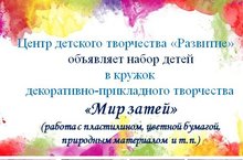 Центр детского творчества "Развитие" объявляет набор детей в кружок декоративно-прикладного творчества.