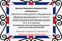 Центр детского творчества "Развитие" объявляет набор детей.