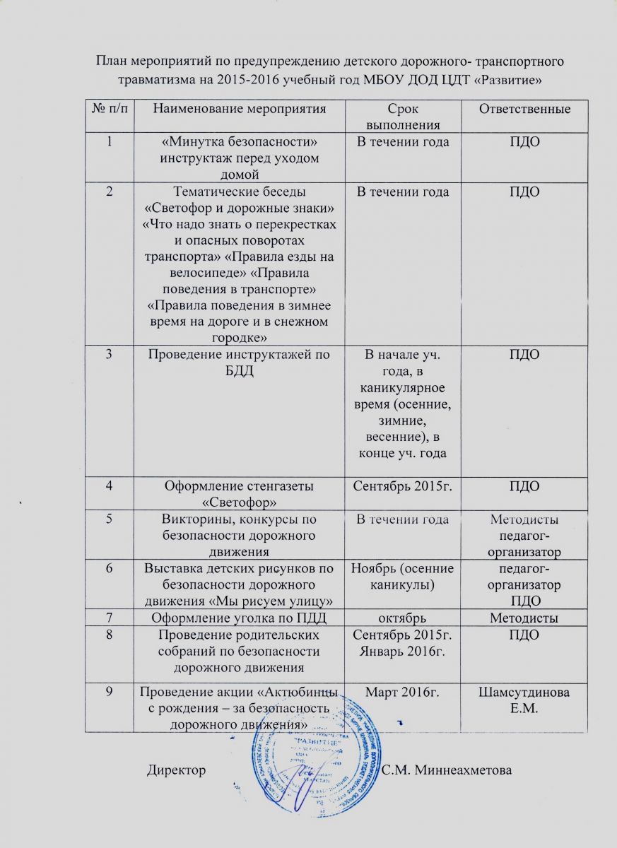 План мероприятий по предупреждению детского дорожно-транспортного травматизма МБОУ ДОД ЦДТ "Развитие"