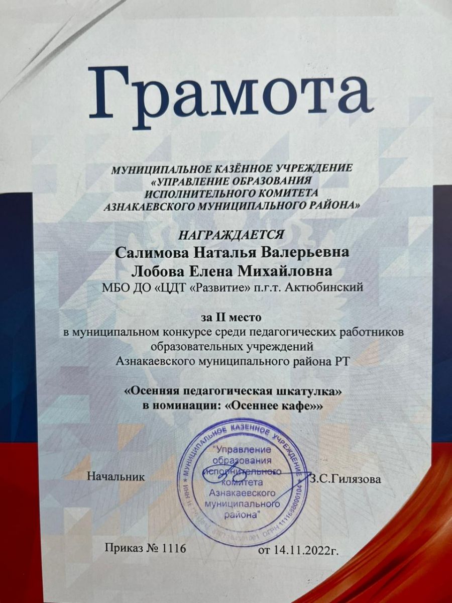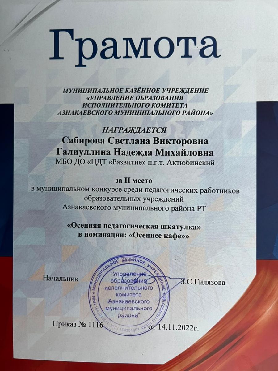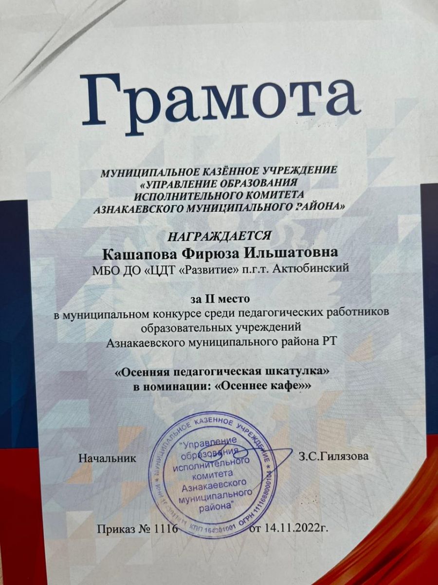 | Короткое название: | МБО ДО "ЦДТ "Развитие" п.г.т.Актюбинский Азнакаевского муниципального района РТ |