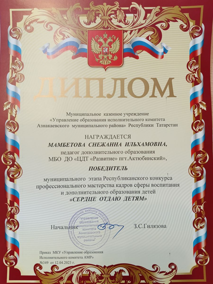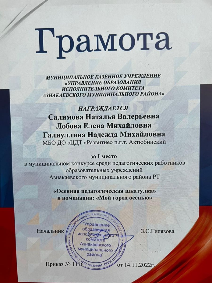 Муниципальная бюджетная организация дополнительного образования «Центр детского творчества «Развитие» п.г.т. Актюбинский Азнакаевского муниципального района Республики Татарстан
