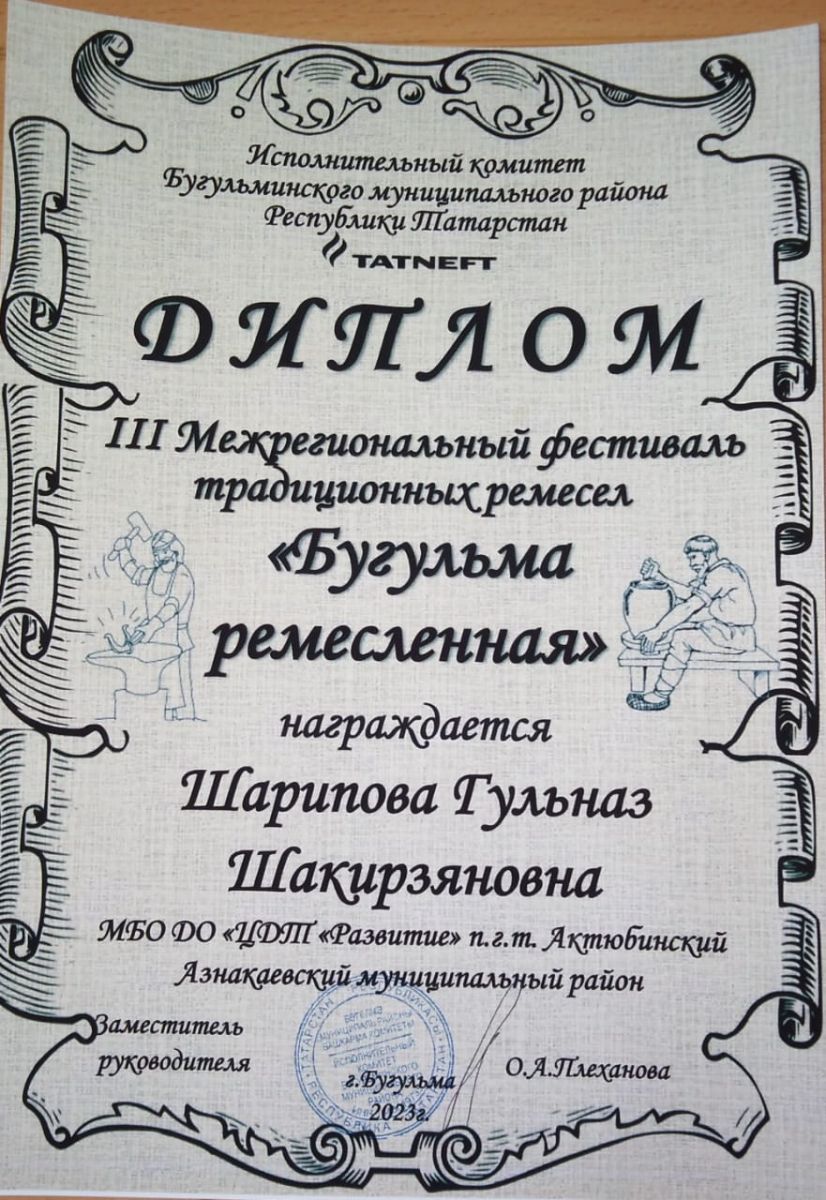 Муниципальная бюджетная организация дополнительного образования «Центр детского творчества «Развитие» п.г.т. Актюбинский Азнакаевского муниципального района Республики Татарстан