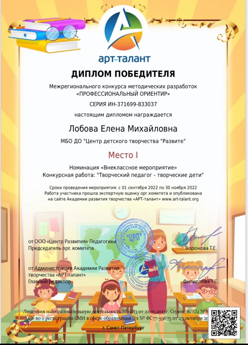 Лауреат 1 степени в I Всероссийском конкурсе "Краски осени", педагог Мамбетова С.И.