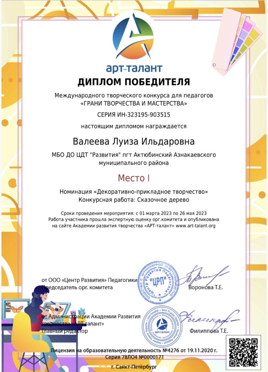 Муниципальная бюджетная организация дополнительного образования «Центр детского творчества «Развитие» п.г.т. Актюбинский Азнакаевского муниципального района Республики Татарстан
