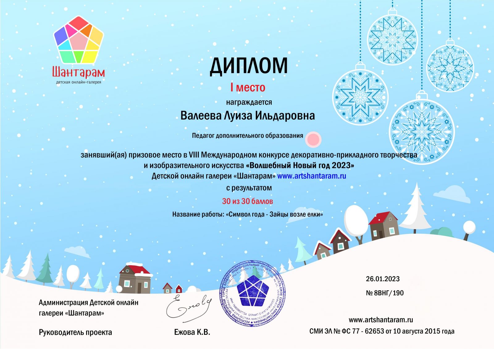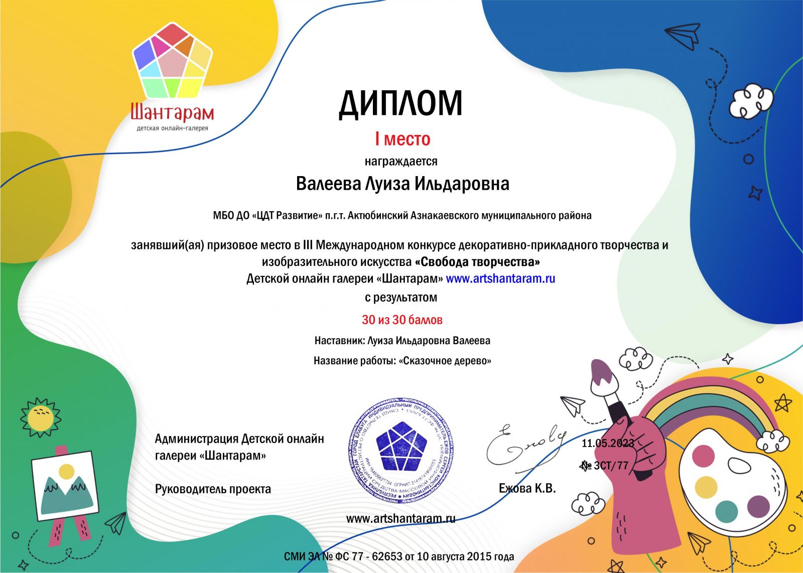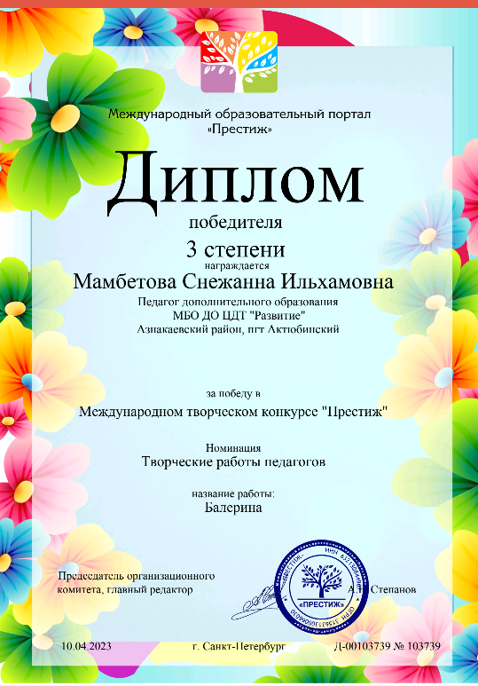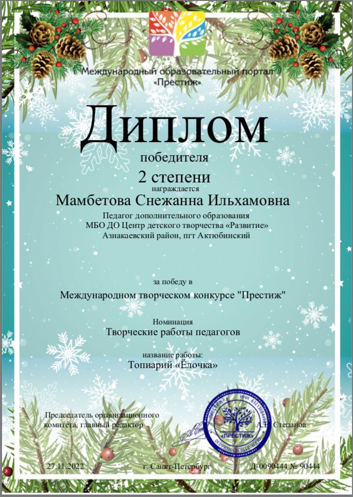 Диплом 2 степени за победу в Международном творческом конкурсе "Престиж", педагог Мамбетова С.И.