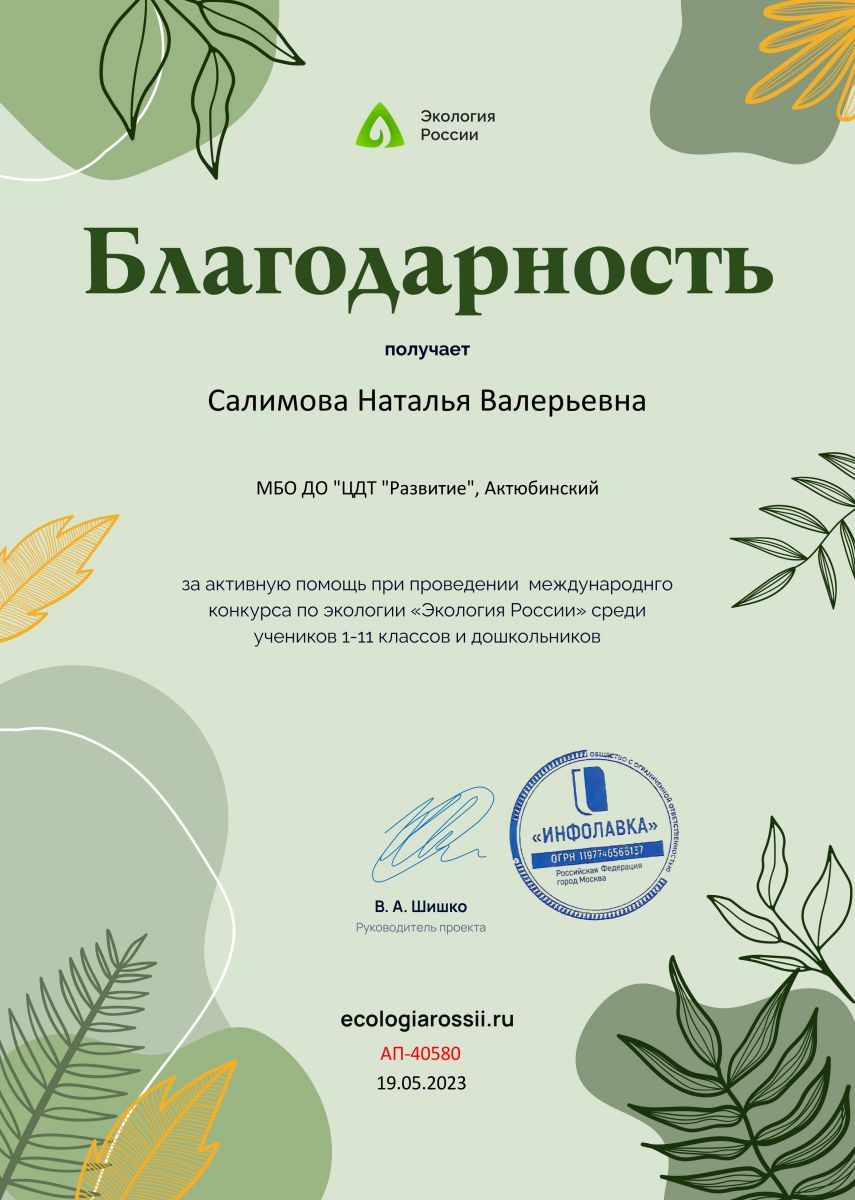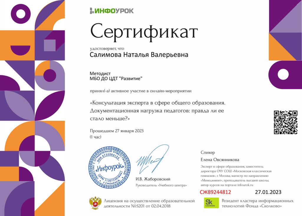 Свидетельство о размещении авторского материала на сайте infourok.ru, педагог Салимова Н.В.