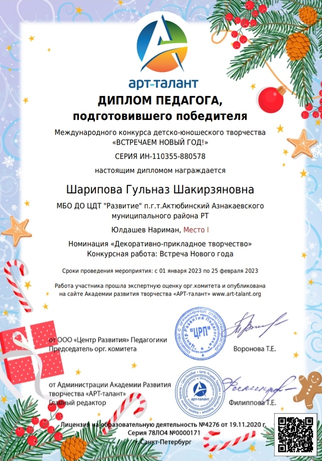Муниципальная бюджетная организация дополнительного образования «Центр детского творчества «Развитие» п.г.т. Актюбинский Азнакаевского муниципального района Республики Татарстан