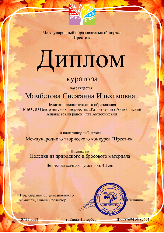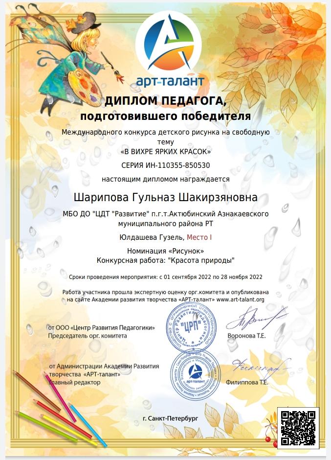 | Короткое название: | МБО ДО "ЦДТ "Развитие" п.г.т.Актюбинский Азнакаевского муниципального района РТ |