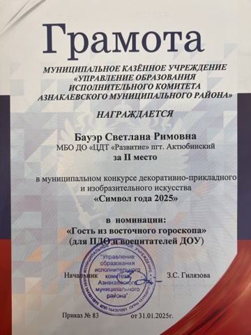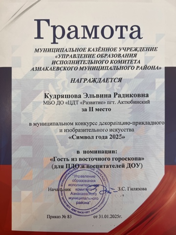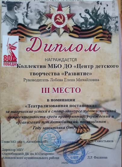 Муниципальная бюджетная организация дополнительного образования «Центр детского творчества «Развитие» п.г.т. Актюбинский Азнакаевского муниципального района Республики Татарстан