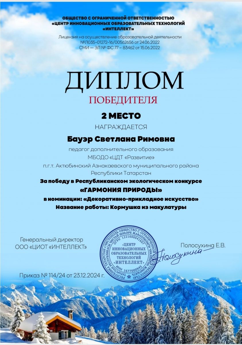 Муниципальная бюджетная организация дополнительного образования «Центр детского творчества «Развитие» п.г.т. Актюбинский Азнакаевского муниципального района Республики Татарстан