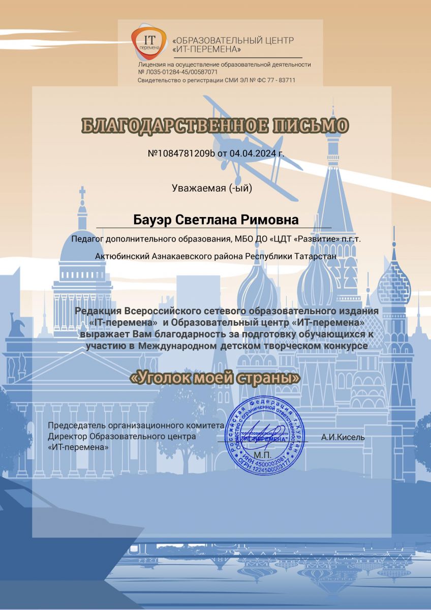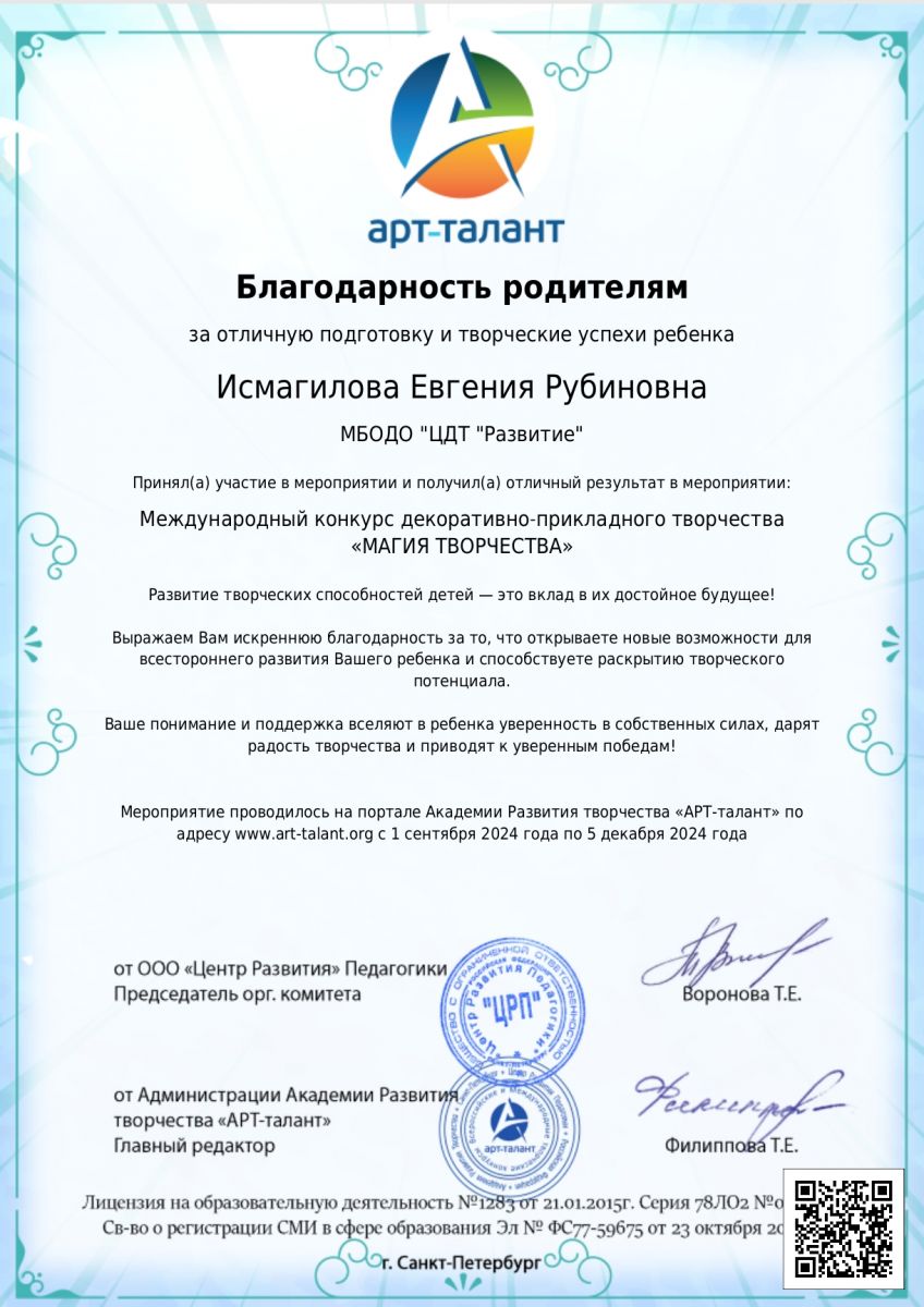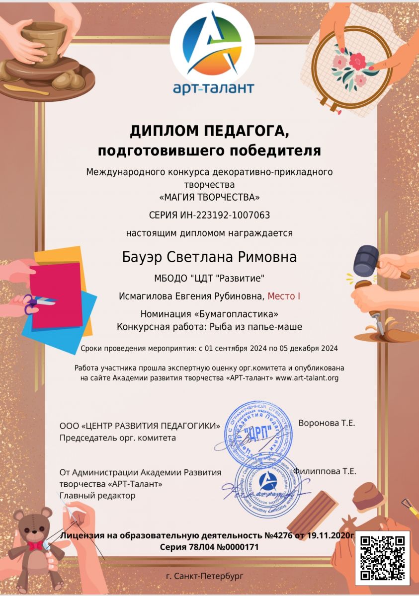 Муниципальная бюджетная организация дополнительного образования «Центр детского творчества «Развитие» п.г.т. Актюбинский Азнакаевского муниципального района Республики Татарстан