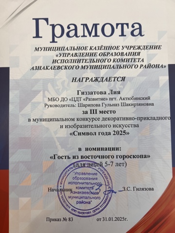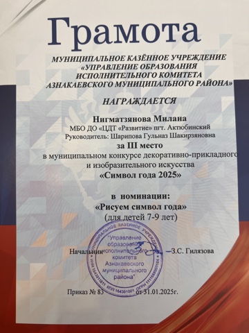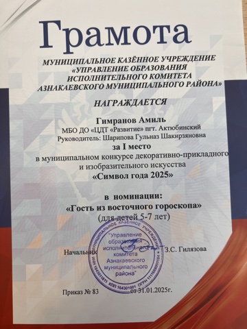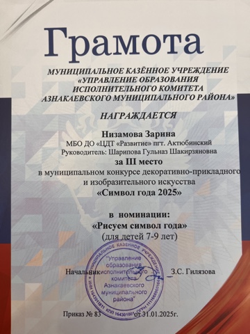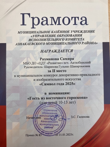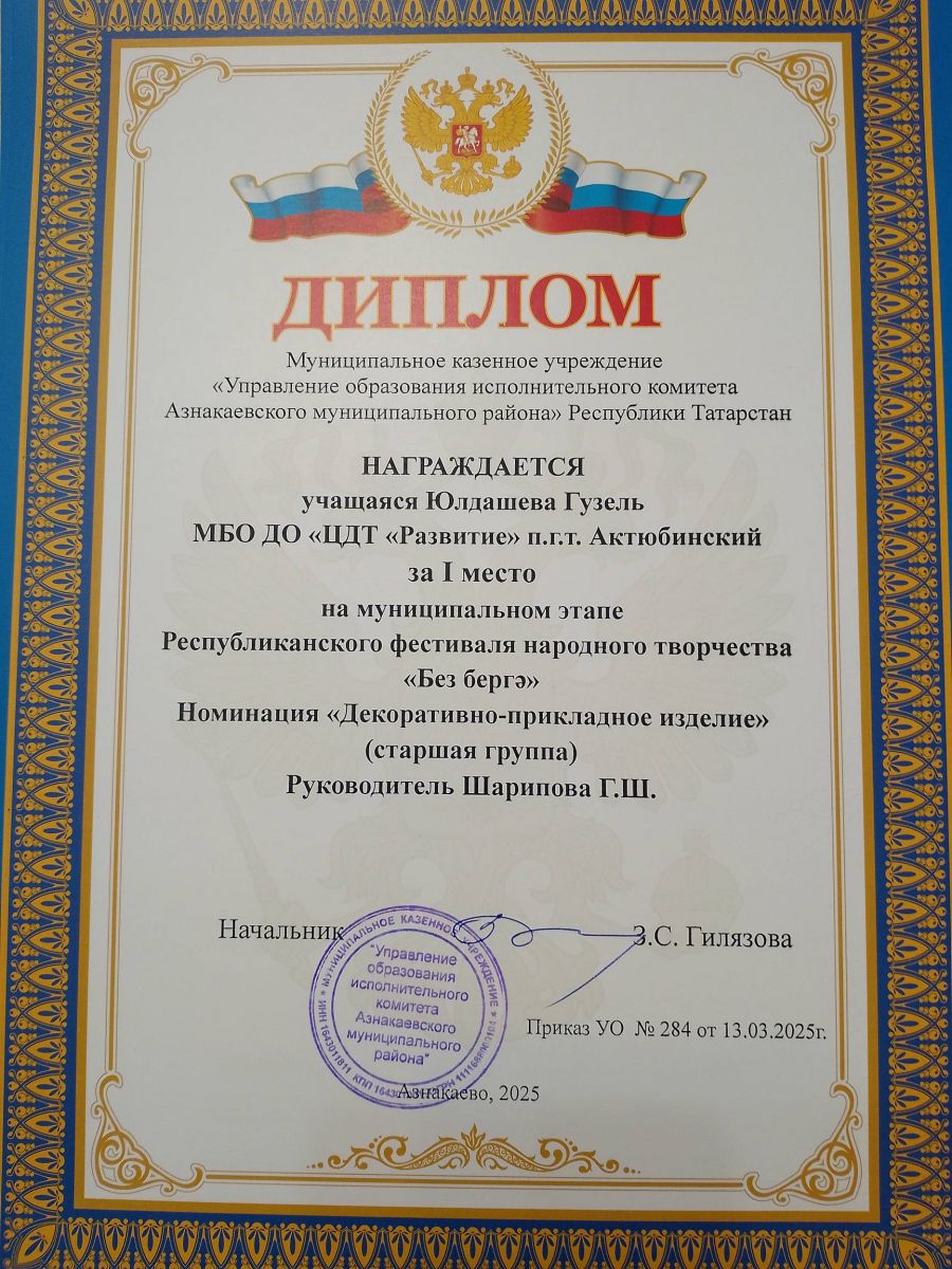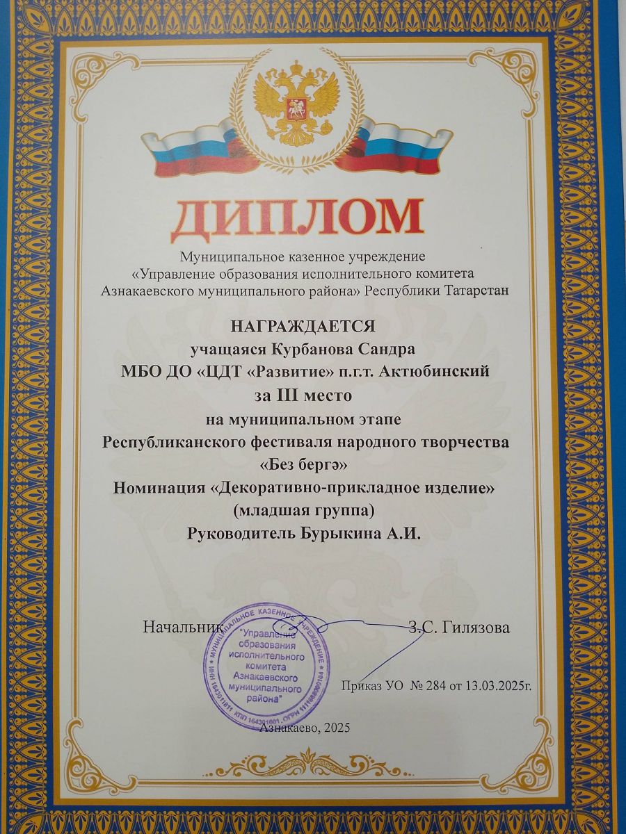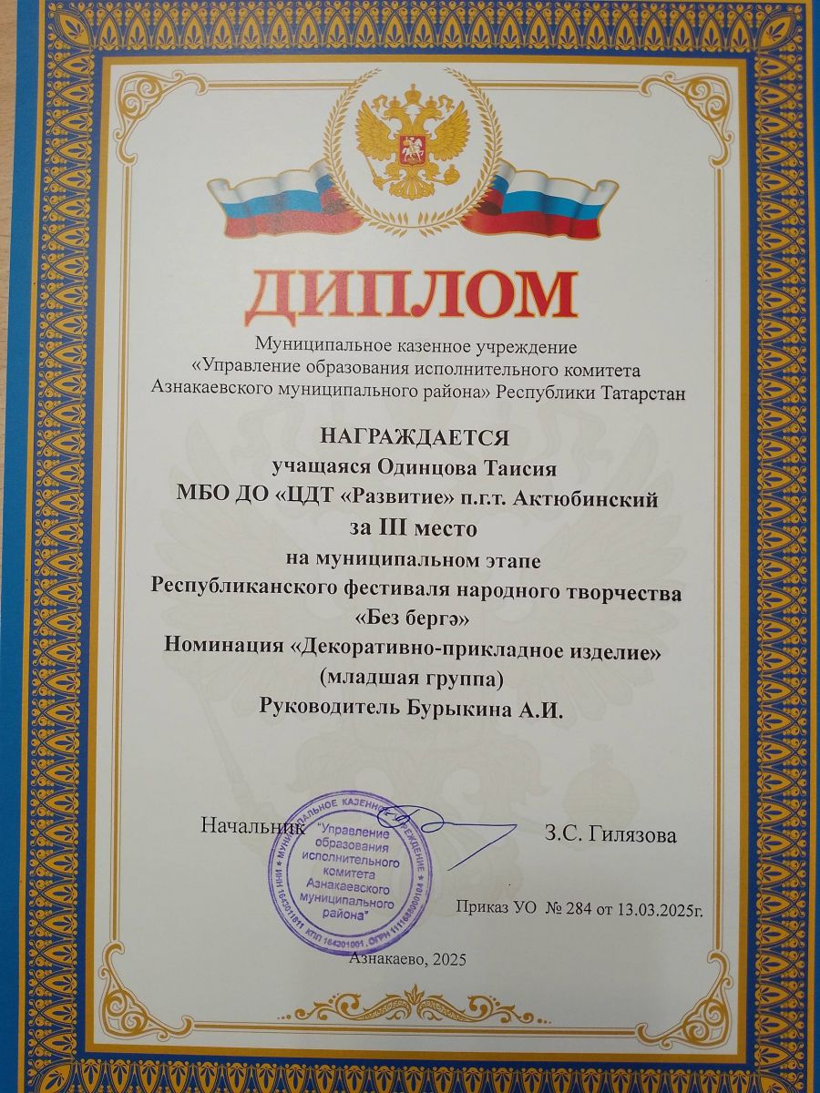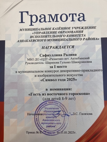 Муниципальная бюджетная организация дополнительного образования «Центр детского творчества «Развитие» п.г.т. Актюбинский Азнакаевского муниципального района Республики Татарстан