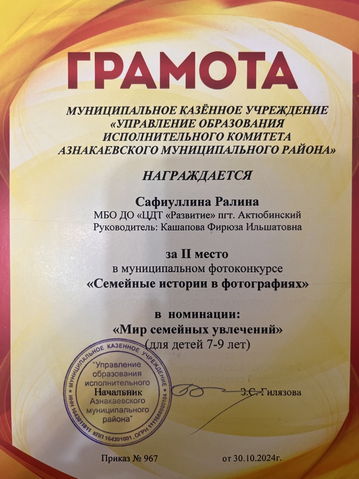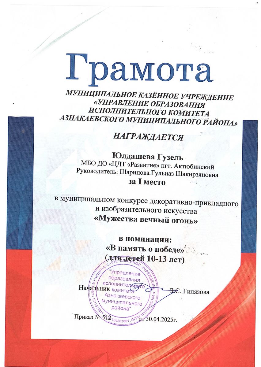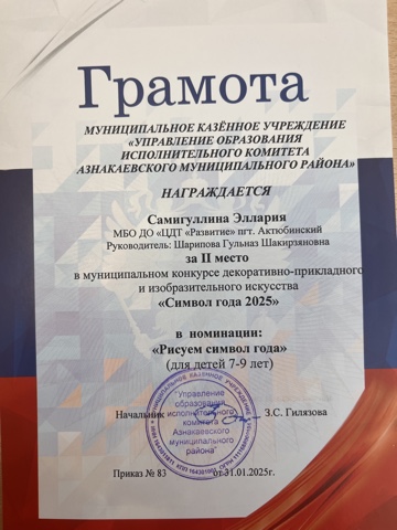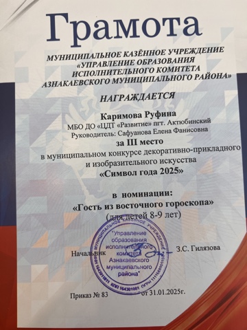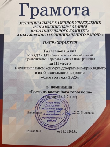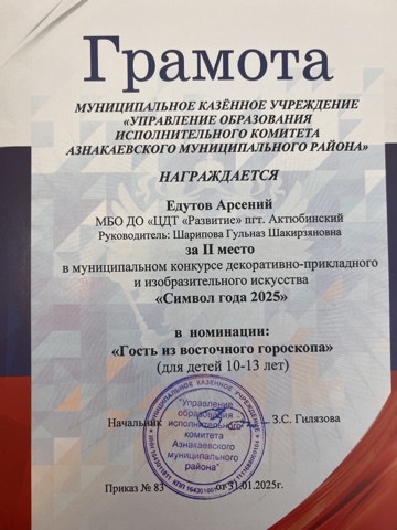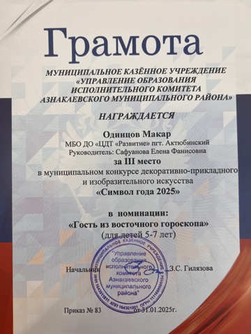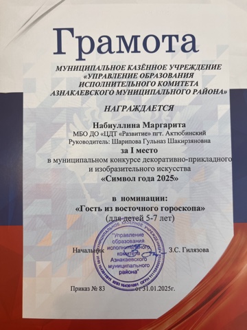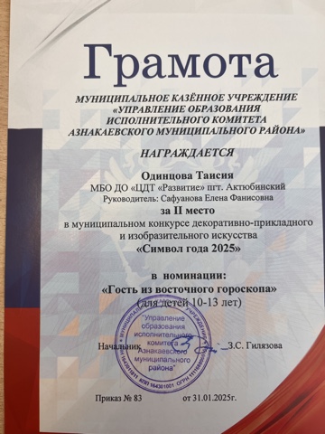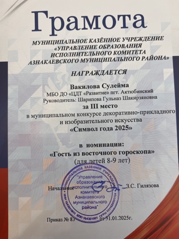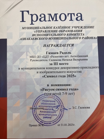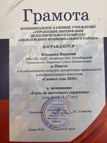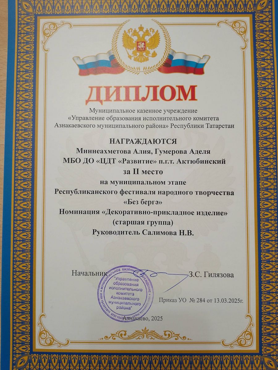 Муниципальная бюджетная организация дополнительного образования «Центр детского творчества «Развитие» п.г.т. Актюбинский Азнакаевского муниципального района Республики Татарстан