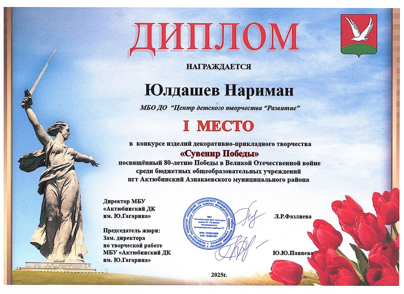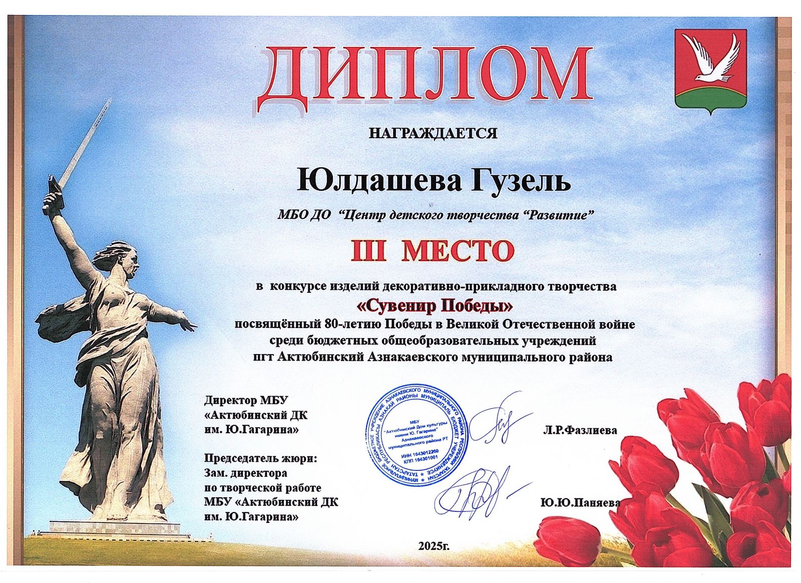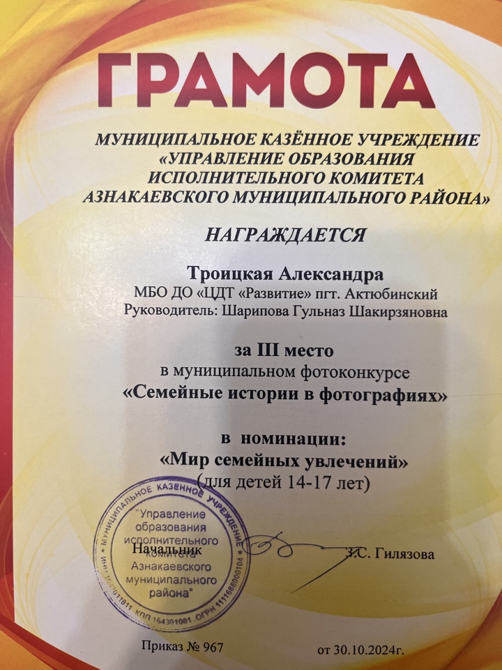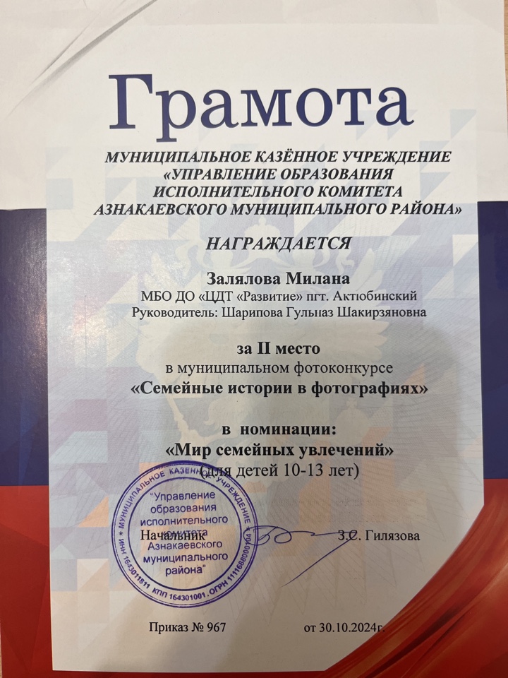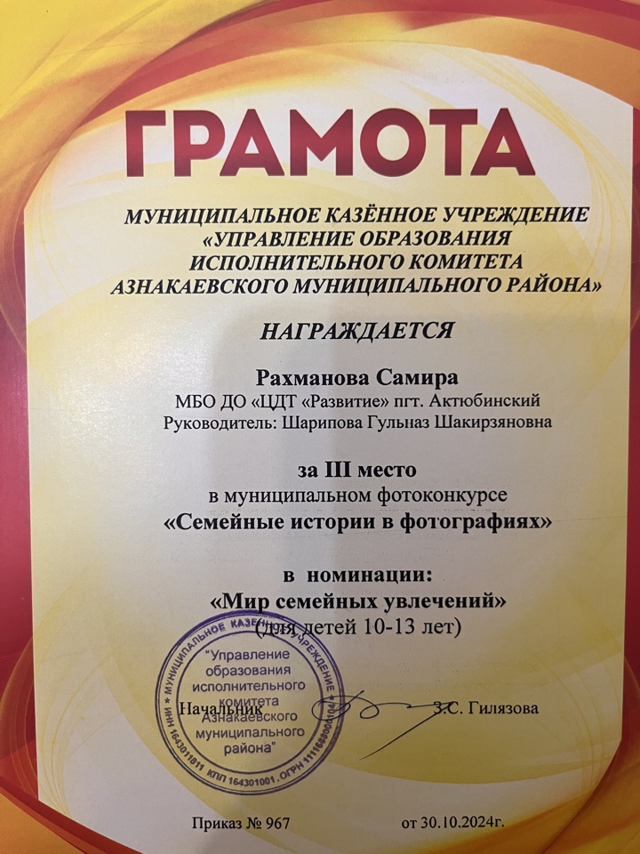Муниципальная бюджетная организация дополнительного образования «Центр детского творчества «Развитие» п.г.т. Актюбинский Азнакаевского муниципального района Республики Татарстан