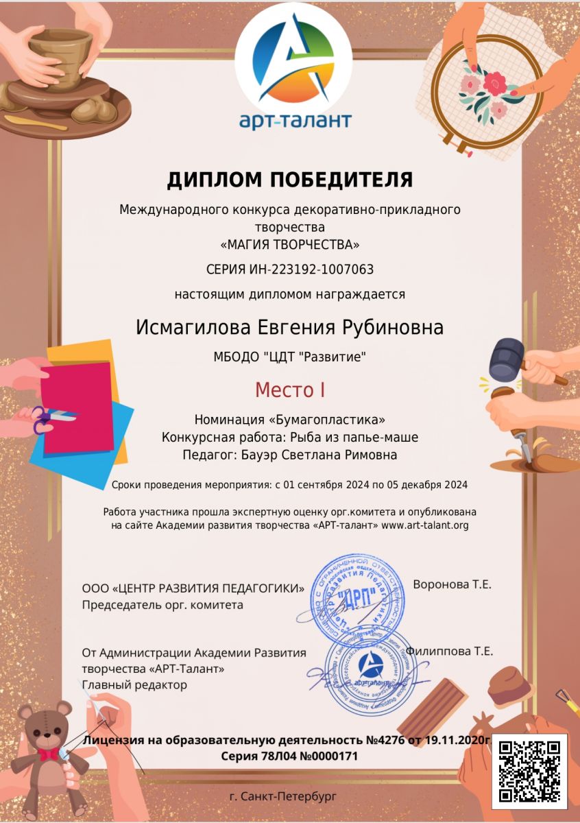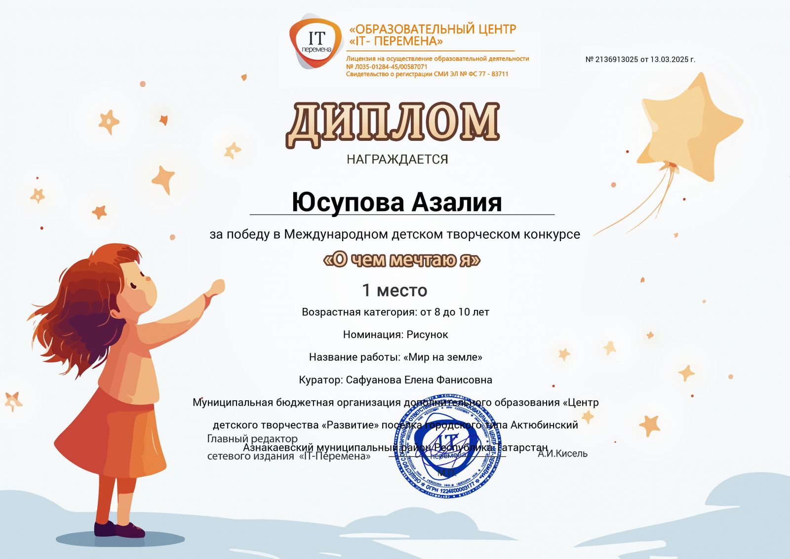 Муниципальная бюджетная организация дополнительного образования «Центр детского творчества «Развитие» п.г.т. Актюбинский Азнакаевского муниципального района Республики Татарстан