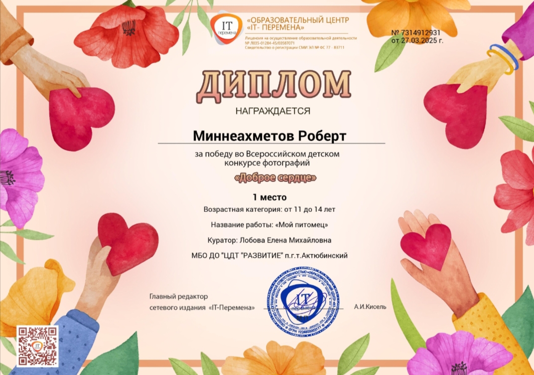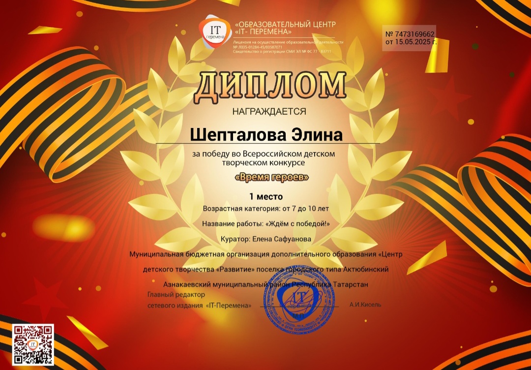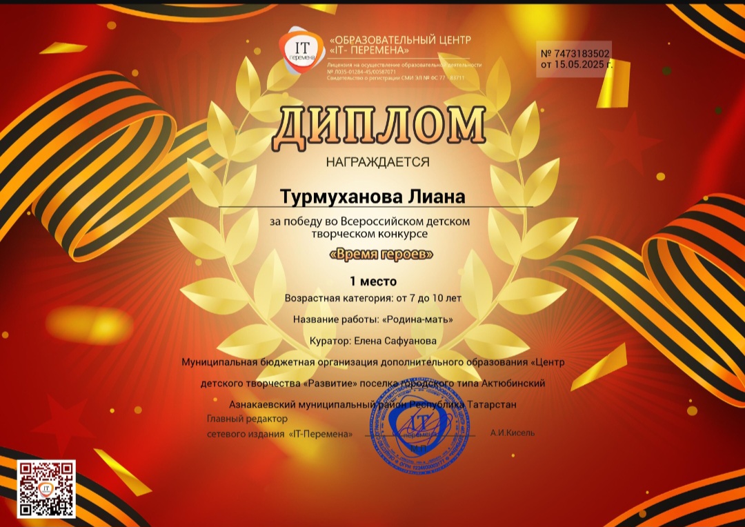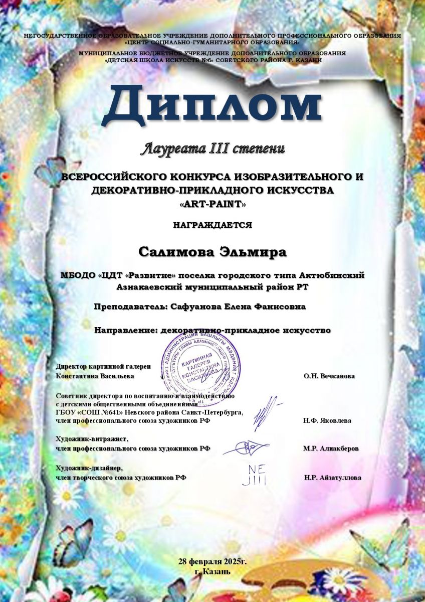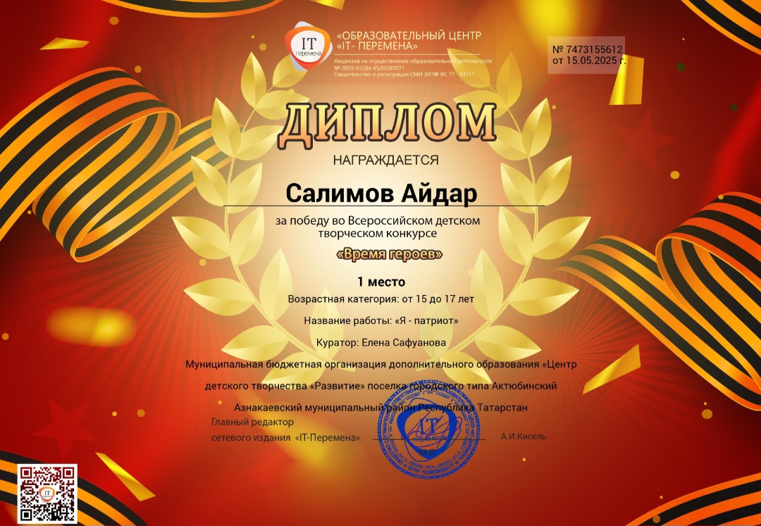 Муниципальная бюджетная организация дополнительного образования «Центр детского творчества «Развитие» п.г.т. Актюбинский Азнакаевского муниципального района Республики Татарстан