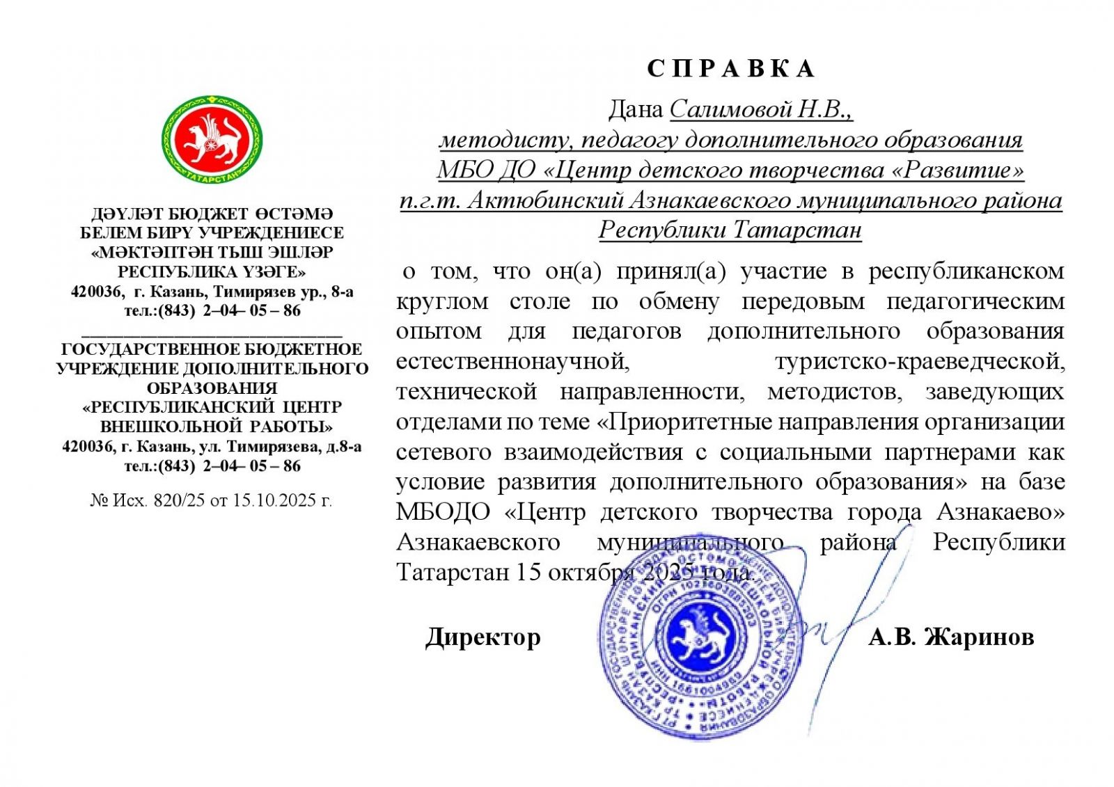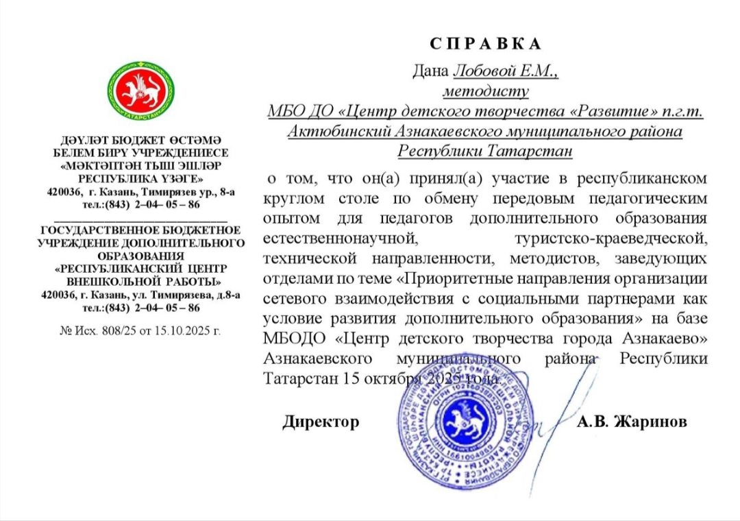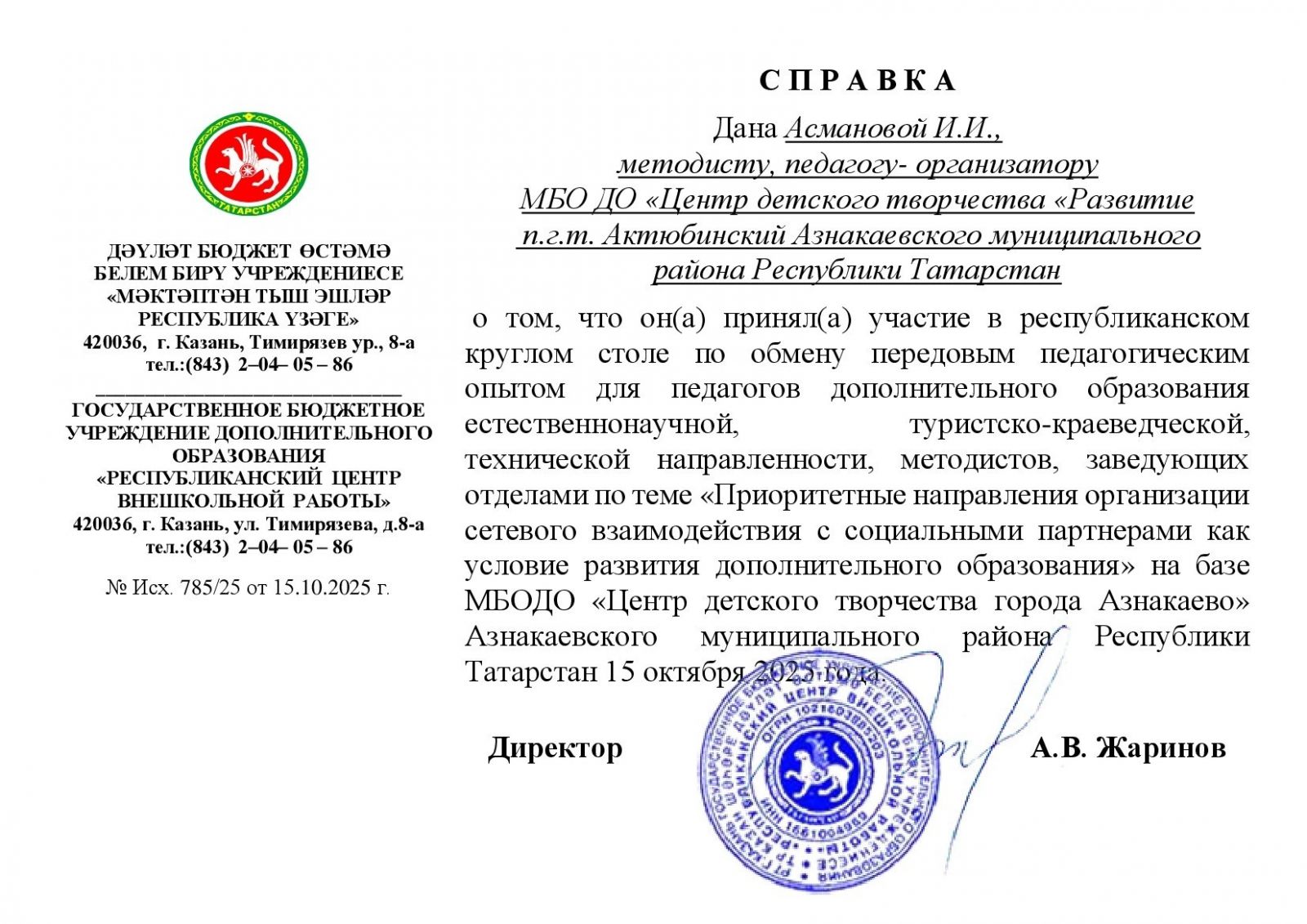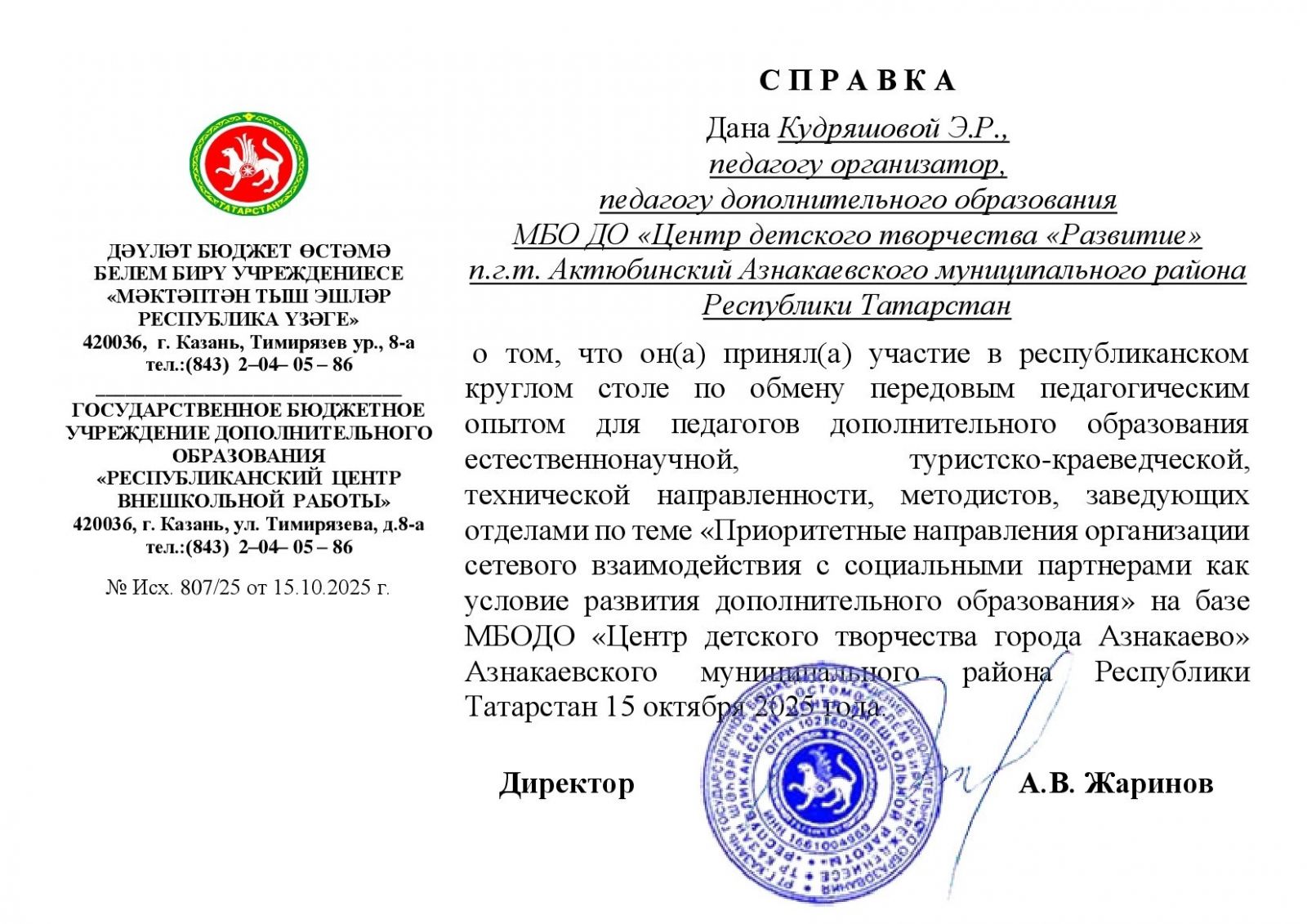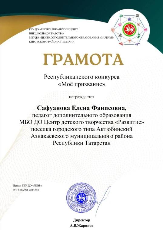 Муниципальная бюджетная организация дополнительного образования «Центр детского творчества «Развитие» п.г.т. Актюбинский Азнакаевского муниципального района Республики Татарстан