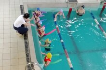 Воспитанники д/с №3 под руководством педагога дополнительного образования Гусевой А.М. обучались элементам плавания стилем кроль на груди с опорой о доску. В игре "Поймай рыбку" обучающиеся закрепляли навык задержки дыхания с погружением в воду. Приятные ассоциации, связанные с плаванием, полученные на занятиях, способствуют формированию положительного эмоционального фона у наших воспитанников.