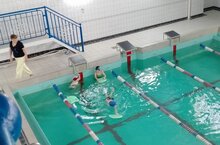 Педагог дополнительного образования Гусева А.М. провела занятие с воспитанниками д/с№ 3 по программе "Здоровячок" по теме: "Обучение скольжению на груди". Ребята обучались скольжению в горизонтальном положении, руки вытянуты вперед, скольжению с толчка от бортика на груди в горизонтальном положении, поочередно правая рука вперед, левая рука вперед.