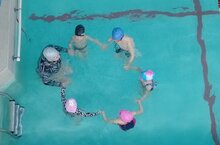 ПДО Гусева А.М.провела занятие с воспитанниками 1-го года обучения на тему: "Многократные выдохи в воду". Ребята выполняли упражнения на погружение с одноразовым активным выдохом в воду, выпрыгивали из воды с выполнением выдоха-вдоха во время прыжка, погружались под воду на задержке дыхания с последующим активным выдохом. Всё это пригодится в дальнейшем для плавания.