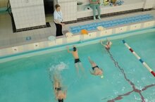 Педагог дополнительного образования Баграмов И.И. с учащимися 2-го года обучения по программе "На волне здоровья" провел занятие на тему: "Гребковые движения руками в согласовании с дыханием". Обучающиеся выполняли движения руками в согласовании со вдохом в заключительной части гребка с последующим проносом рук над водой и выдохом в воду.