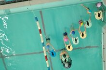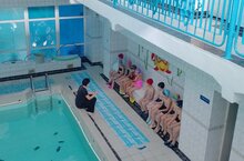 Сегодня занятие ПДО Муртазиной М.М. посетили воспитанники д/с№1, которые обучаются по программе "Здоровячок" 2-ой год. После разминки ребята спустились в бассейн, где они вспомнили и повторили движения ногами при плавании кролем на груди с опорой руками о доску, а также выполняли упражнения на выдохи в воду. Занятие завершилось игрой с мячами. Заряженные энергией и положительными эмоциями ребята покинули бассейн.