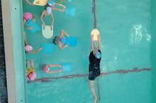 С воспитанниками 1-го года обучения ПДО Зильберман Г.Г. провела занятие по программе "Здоровячок", на котором ребята передвигались в воде различными способами (на носочках, широким шагом, мелким шагом, противоходом и т.д.) с опорой на доску и без опоры.