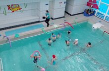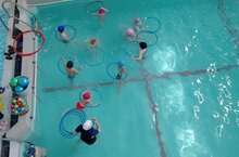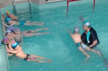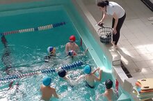 В группе 1-го года обучения с воспитанниками д/с №1 ПДО Муртазина М.М. провела занятие по обучению технике движений ногами при плавании кр/гр с опорой о доску и с помощью колобашки. В игре "Мой дом", используя обручи, повторили технику дыхательных упражнений.