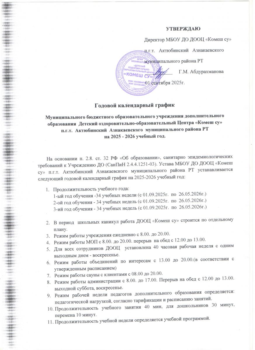 Муниципальное бюджетное образовательное учреждение дополнительного образования «Детский оздоровительно-образовательный центр «Комеш су» п.г.т.Актюбинский Азнакаевского муниципального района РТ»