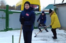 Ребята убрали снег со двора. А после работы ветеран рассказал учащимся о фронтовых годах, школьники задавали вопросы и фотографировались с ветераном на память. -